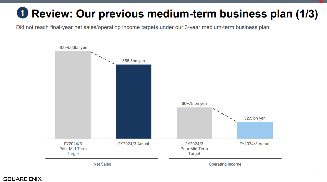 A Square Enix anunciou o estabelecimento de um novo plano de negócios de médio prazo que abrange o ano fiscal que termina em 31 de março de 2025 até o ano fiscal que termina em 31 de março de 2027, o qual denomina “Square Enix Reboots and Awakens: 3 anos de construção de bases para crescimento a longo prazo”.