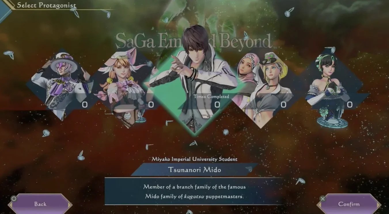 Falar da história de SaGa é um esforço hercúleo. Não porque ela seja complexa, mas porque sua narrativa, a forma como ela é contada, é totalmente bizarra. Em SaGa Emerald Beyond, podemos escolher 5 protagonistas. Para fazer esta review, eu terminei o jogo com 2. Primeiro com Tsunanori Mido, o mestre titereiro que controla Kugutsus, umas marionetes, e com Bonnie e Firmina, duas policiais de Capitol City. Os outros 3 são Siugnas, Diva 5 e Ameya. Embora eu não tenha jogado com os 3, imagino que a história de todos seja contada da mesma forma.
